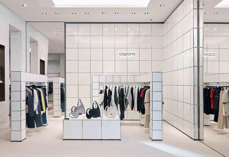 USM 가구로 연출된 공간에서 코페르니의 의류와 가방 등을 전시·판매한다.