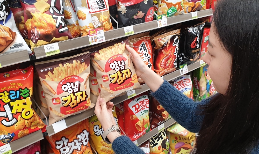 새우깡 왕좌 노린다…CU 롯데리아 양념감자 스낵 매출 1위