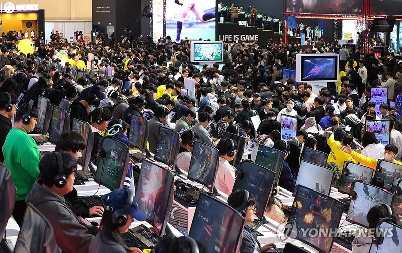 | ▲ 지스타 게임 열기 (부산=연합뉴스) 손형주 기자 = 16일 부산 벡스코에서 개막한 국내 최대 게임전시회 지스타2023에서 관람객들이 게임을 즐기고 있다. 지스타 2023은 총 42개국 1천37개 기업 3천328개 부스 규모로 19일까지 4일간 열린다. 2023.11.16 handbrother@yna.co.kr |