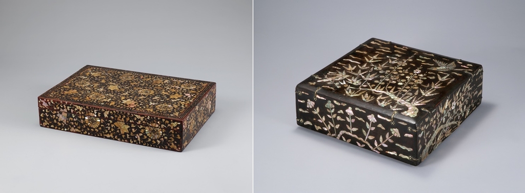 | ▲ 호림박물관 특별전 전시유물 왼쪽부터 나전 국모란당초문 상자, 나전 매죽조문 상자. [호림박물관 제공. 재판매 및 DB 금지] |