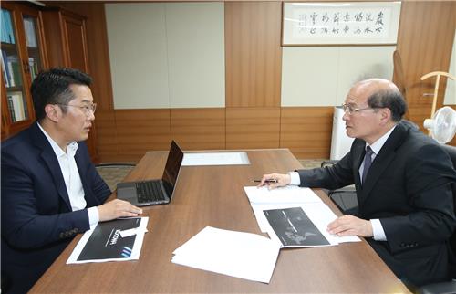 (서울=연합뉴스) 이정현 기자 = 방송통신위원회 이상인 부위원장은 13일 정부과천청사에서 온라인동영상서비스(OTT) 플랫폼 '코코와'(KOCOWA)를 통해 K-콘텐츠의 미주지역 서비스를 담당하는 웨이브아메리카스 박근희 대표와 면담했다.