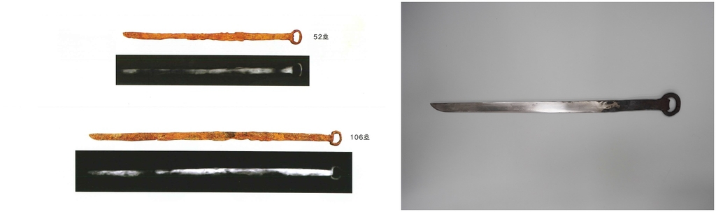 | ▲ 환두대도 충북 충주 금릉동 고분군 출토 환두대도(왼쪽)와 복원한 환두대도 모습 [국립중원문화재연구소 제공. 재판매 및 DB 금지 |