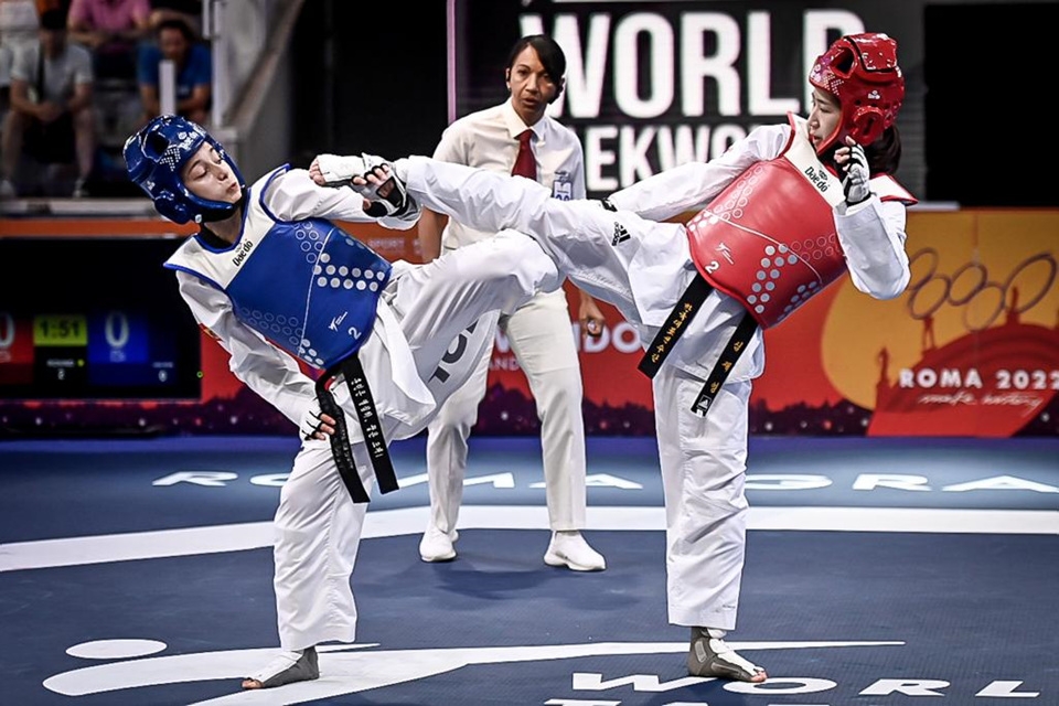 | ▲ 여자 49㎏급 심재영(오른쪽)의 경기 모습. [세계태권도연맹 제공. 재판매 및 DB 금지] |