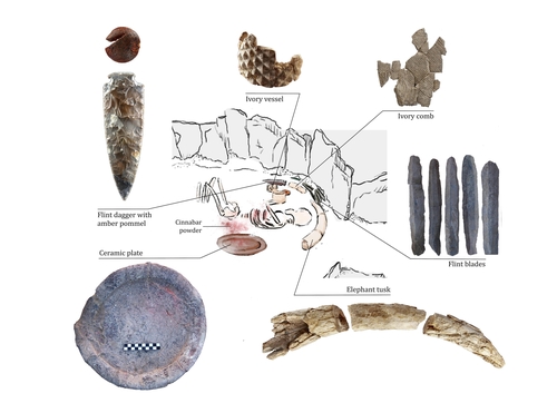 2층 구조로 된 이 무덤은 발견 당시 내부에서 상아와 수정 단검, 보석의 일종인 호박, 타조 알껍데기, 고급 부싯돌 등 귀중품과 함께 유골 한 구가 발견됐다.