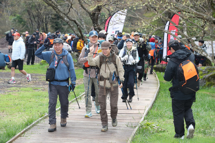 Contestants start a popular outdoor trekking event, known as the Fjallraven Classic Korea, at Eorimok Square on the slope of Mount Halla in the city of Jeju on South Korea's largest island of the same name on Oct. 22, 2025. The event brought together 500 participants from 20 countries who will walk on a 58-kilometer trek for three days. (Yonhap)