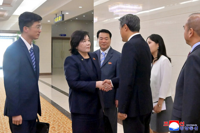 North Korean Foreign Minister Choe Son-hui (2nd from L) arrives at an international airport in Pyongyang on Sept. 30, 2025, following her four-day trip to Beijing, in this photo released by the North's official Korean Central News Agency the following day. (For Use Only in the Republic of Korea. No Redistribution) (Yonhap)