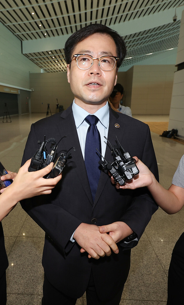 Trade Minister Yeo Han-koo speaks to reporters at Incheon airport, west of Seoul, on Sept. 15, 2025, prior to his departure for Washington for follow-up tariff negotiations with top U.S. officials. (Yonhap)