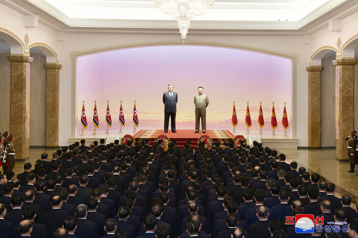 North Korean officials pay their respects at the Kumsusan Palace of the Sun in Pyongyang on the birthday of late leader Kim Jong-il on Feb. 16, 2025, in this photo released by the North's Korean Central News Agency. (For Use Only in the Republic of Korea. No Redistribution)(Yonhap)