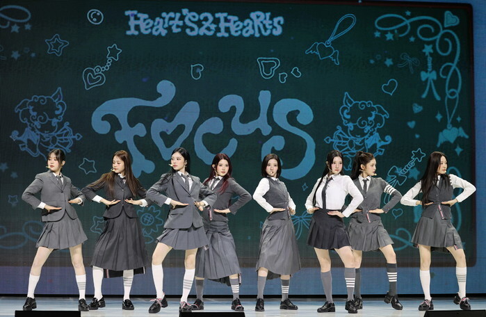 South Korean girl group Hearts2Hearts performs during a showcase for the group's first mini album "Focus" in Seoul on Oct. 20, 2025. (Yonhap)