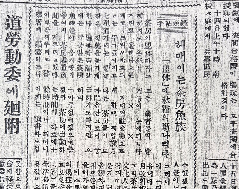 그렇다면 1955년 3월 15일자 '헤메이는 다방어족' 기사에서 왜 다방이 동맹 휴업에 들어간 것일까.