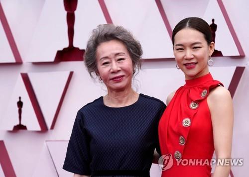 윤여정은 '미나리'에 함께 출연한 배우 한예리와 함께 레드카펫에 올랐다.