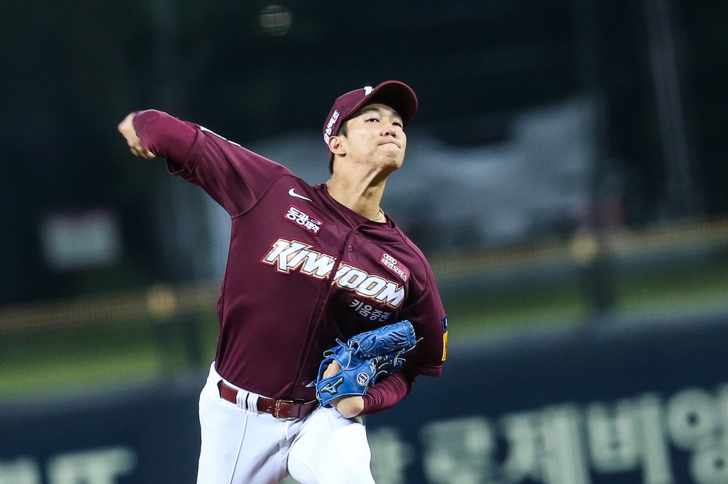 | ▲  In this Sept. 30, 2021, file photo provided by the Kiwoom Heroes, An Woo-jin, starter for the Heroes, pitches against the Kia Tigers during a Korea Baseball Organization regular season game at Gwangju-Kia Champions Field in Gwangju, 330 kilometers south of Seoul. (PHOTO NOT FOR SALE) (Yonhap) |