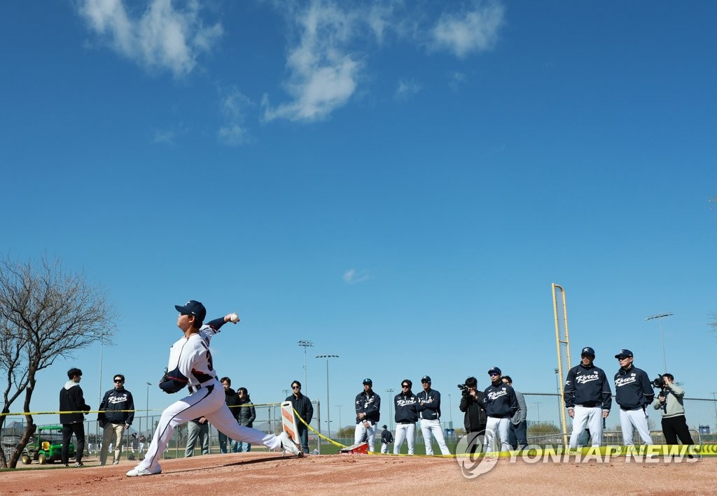 | ▲ South Korean pitcher So Hyeong-jun pitches during a practice session for the World Baseball Classic at Kino Sports Complex in Tucson, Arizona, on Feb. 15, 2023. (Yonhap) |