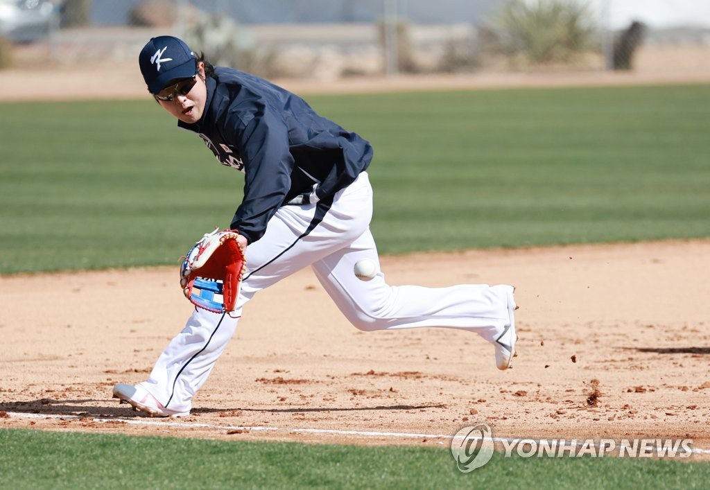 | ▲ South Korean third baseman Choi Jeong fields a grounder during a practice session for the World Baseball Classic at Kino Sports Complex in Tucson, Arizona, on Feb. 15, 2023. (Yonhap) |