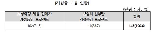 | ▲ 보상형 크라우드 펀딩 프로젝트의 기성품 보상 현황 [한국소비자원 보도자료 캡처. 재판매 및 DB 금지] |