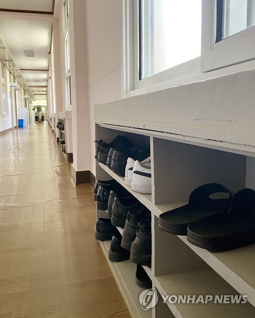 | ▲ 산골 폐교에 자리한 순창경찰서 (순창=연합뉴스) 김진방 기자 = 21일 전북 순창군 순창경찰서 임시 청사 신발장에 경찰관들이 신발을 놓아두었다. 순창경찰서는 신청사 건립을 위해 임시로 순창군 구림면 월정리 월정초등학교 폐교 자리에 임시 청사를 마련했다. 2021.4.21 chinakim@yna.co.kr |