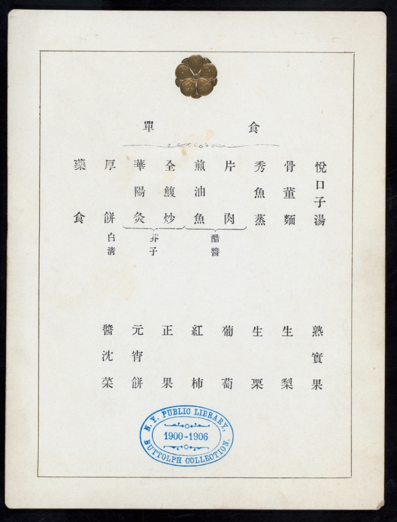 | ▲ 대한제국 황실 오찬 식단(1905년 9월 20일), 미국 뉴욕 공공도서관(NYPL) 소장 [덕수궁관리소 제공. 재판매 및 DB 금지 |