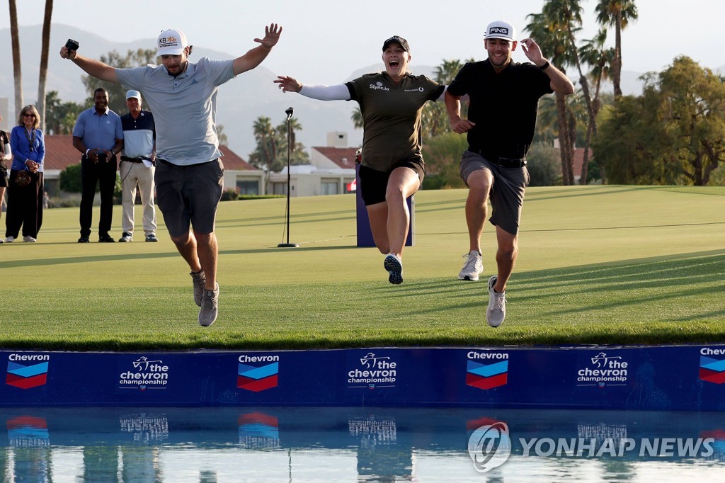 | ▲ 2022년 셰브론 챔피언십 우승자 컵초가 연못에 뛰어드는 모습. [AFP=연합뉴스] |