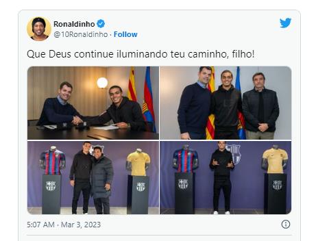 호나우지뉴는 바르셀로나 구단 발표 이후 자신의 소셜미디어에 멘지스의 계약 사진과 함께 '아들아, 신께서 너의 길을 계속 밝혀주시길'이라는 글을 올려 축하했다.
