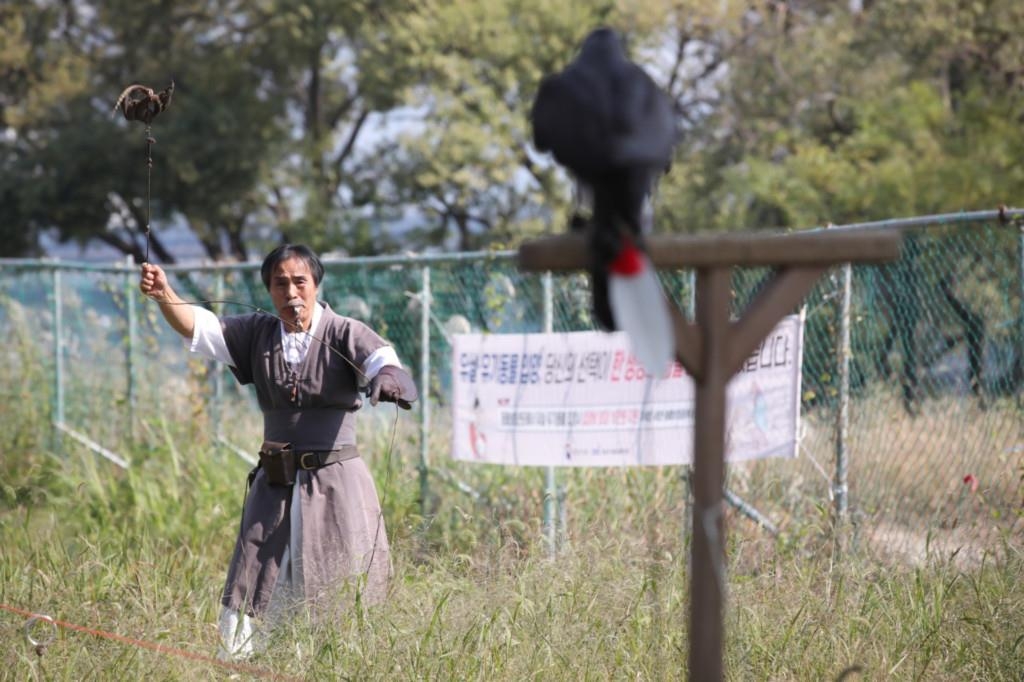 | ▲ 매사냥 시연 2022년 응봉 매사냥 축제에서 무형문화재 박용순 응사가 매사냥을 시연하고 있다. [성동구 제공. 재판매 및 DB 금지] |