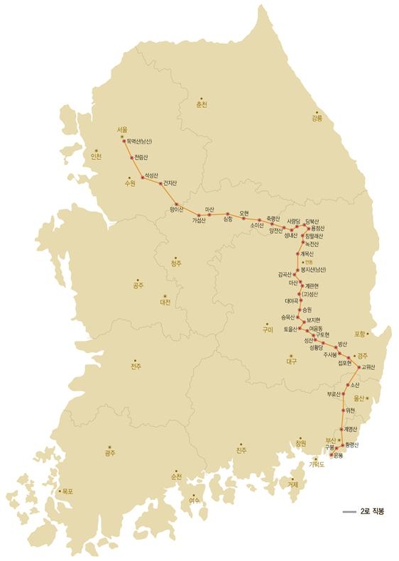 직봉 가운데 부산 응봉과 서울 목멱산(지금의 남산)을 잇는 '제2로 직봉', 전남 여수 돌산도에서 서울 목멱산을 연결하는 '제5로 직봉'이 남쪽에 있고 나머지는 북쪽에 자리하고 있다.