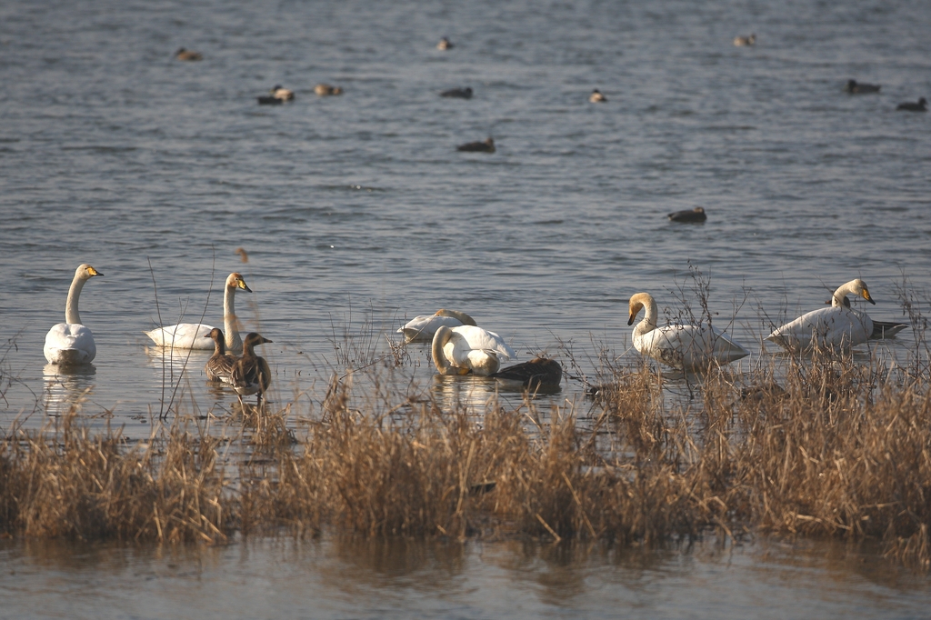 그동안 강추위로 얼었던 천수만 간월호가 녹기 시작하면서 인근 저수지 등에서 소규모로 겨울을 나던 천연기념물 큰고니도 다시 날아들고 있다.