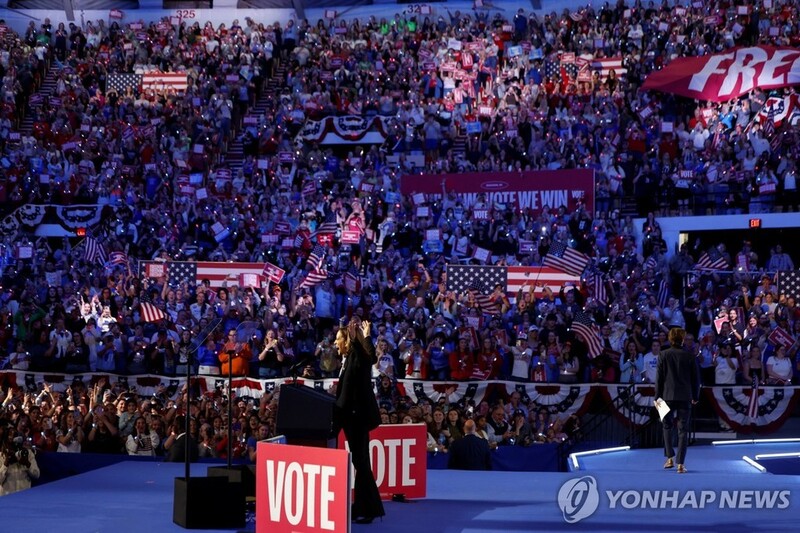 | ▲ U.S. Vice President Kamala Harris attends a campaign rally in Madison, Wisconsin on Oct. 30, 2024 in this photo released by Reuters. (Yonhap) |