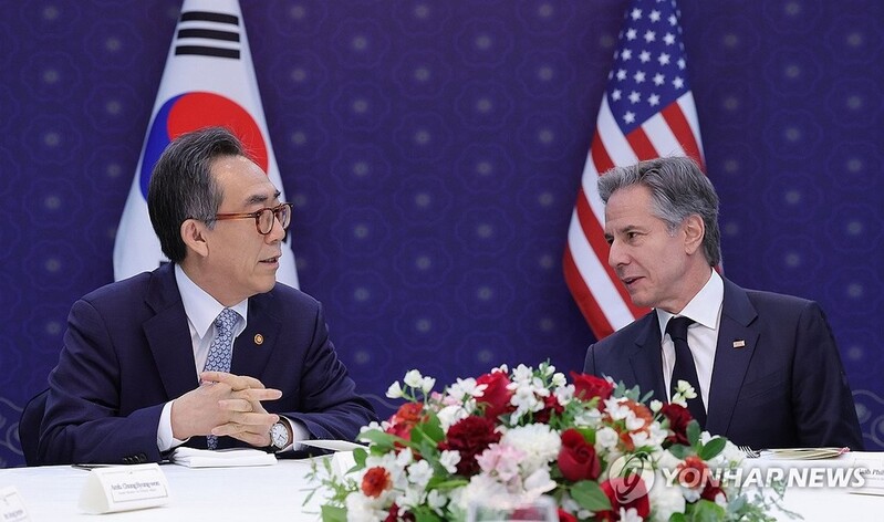 On the bilateral alliance, Cho asked for Blinken's support in ensuring that the key achievements Seoul and Washington have made under the Joe Biden administration are "handed over smoothly" to the next U.S. administration.