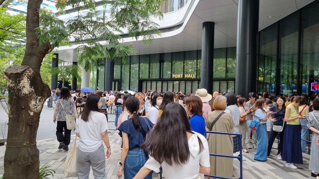 24일 일본 도쿄 미나토구에 있는 '포트시티 다케시바'에는 K팝 아이돌을 보러온 젊은이들이 오전부터 줄을 길게 늘어섰다.