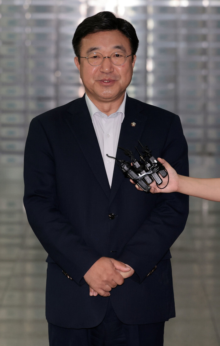 Yun Ho-jung, nominated by President Lee Jae Myung as the interior and safety minister, speaks to reporters as he arrives at his temporary office in Seoul on June 30, 2025, to prepare for his parliamentary confirmation hearing. (Yonhap)