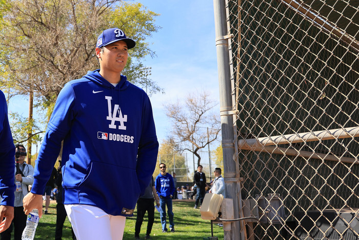 Japan's slugger-pitcher Shohei Ohtani of the Los Angeles Dodgers is pictured at the team's spring training site at Camelback Ranch in Glendale, Arizona, on Feb. 19, 2025. (Yonhap)