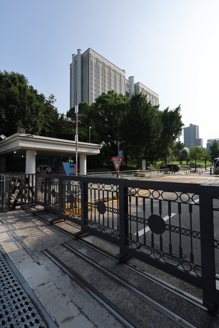 Access to the Seoul Central District Court in the capital city is restricted on July 9, 2025, as former President Yoon Suk Yeol is set to attend a hearing there later in the day to review the legality of his detention over charges related to his failed attempt to impose martial law. (Yonhap)
