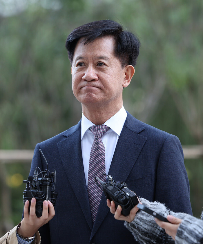 Lawyer Park No-soo, a new aide to special counsel Min Joong-ki, who is investigating former President Yoon Suk Yeol's wife, Kim Keon Hee, over various allegations, meets the press as he arrives for work at the office of Min's team in Seoul on Oct. 27, 2025. (Yonhap)