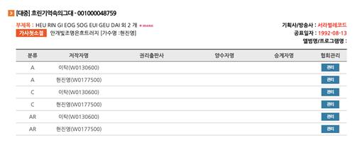 | ▲ '흐린 기억 속의 그대' 저작권 정정 현황 [한국음악저작권협회 캡처.] |