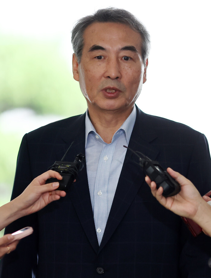 Min Joong-ki, the independent counsel named to lead a probe into former President Yoon Suk Yeol's wife, Kim Keon Hee, over various allegations, speaks to reporters on arrival at his office in Seoul on June 27, 2025. (Yonhap)