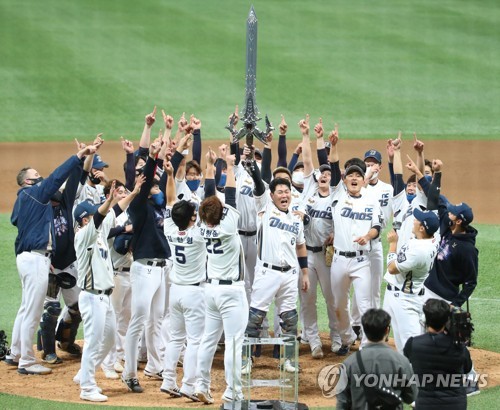 SEOUL, Nov. 25 (Yonhap) -- After clinching their first-ever South Korean baseball championship Tuesday night, the NC Dinos celebrated their victory with ... a sword?