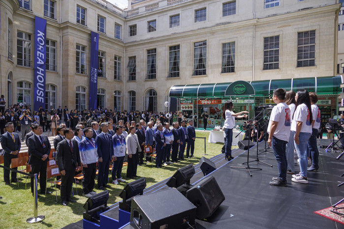 An opening ceremony for the Korea House is under way at Maison de la Chimie in Paris on July 25, 2024. The house will serve as a South Korean hospitality venue showcasing South Korean culture and supporting the country's athletes during the Paris Olympics. (Yonhap)