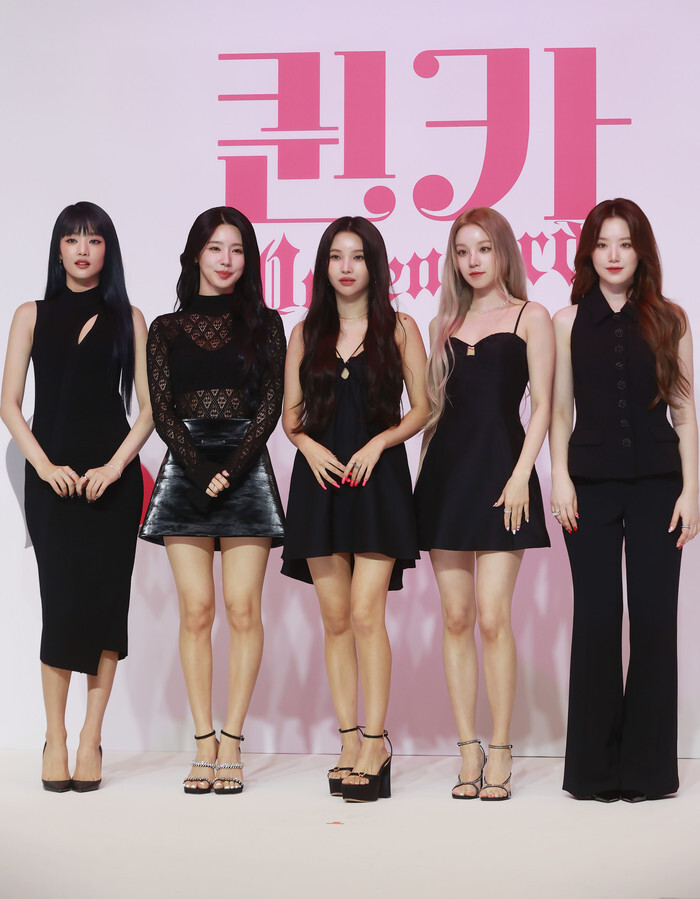 South Korean girl group (G)I-DLE poses for a photo during a showcase in Seoul on May 15, 2023, to promote the release of the group's sixth mini album "I feel." (Yonhap)