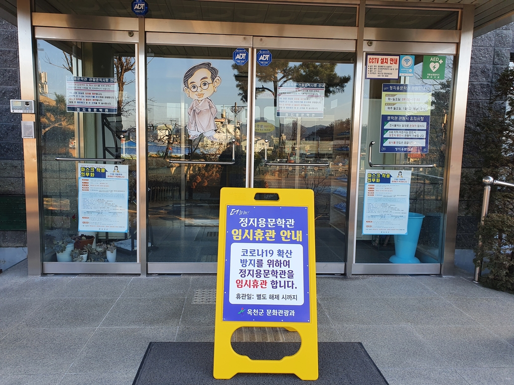 (옥천=연합뉴스) 심규석 기자 = 충북 옥천군은 신종 코로나바이러스 감염증(코로나19) 확산을 차단하기 위해 공공부문의 6개 관광시설을 휴관한다고 16일 밝혔다.