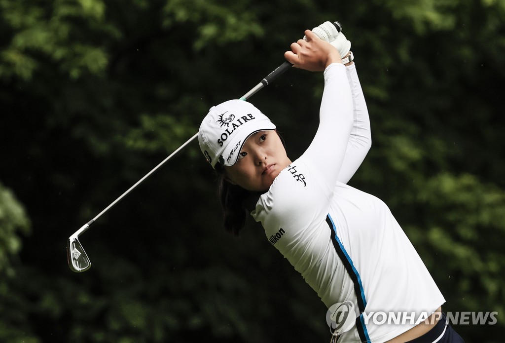 ▲ In this Getty Images photo, Park In-bee of South Korea watches her tee shot from the fourth hole during the final round of the Meijer LPGA Classic for Simply Give at Blythefield Country Club in Belmont, Michigan, on June 20, 2021. (Yonhap)