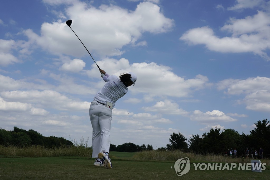 | ▲ In this Associated Press photo, Ko Jin-young of South Korea watches her tee shot from the first hole during the final round of the Volunteers of America Classic on the LPGA Tour at Old American Golf Club in The Colony, Texas, on July 4, 2021. (Yonhap) |