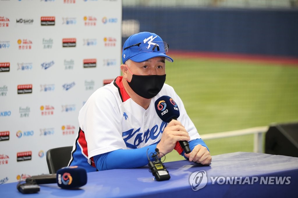 | ▲ Kim Kyung-moon, manager of the South Korean Olympic baseball team, speaks at a press conference at Gocheok Sky Dome in Seoul on July 18, 2021. (Yonhap) |