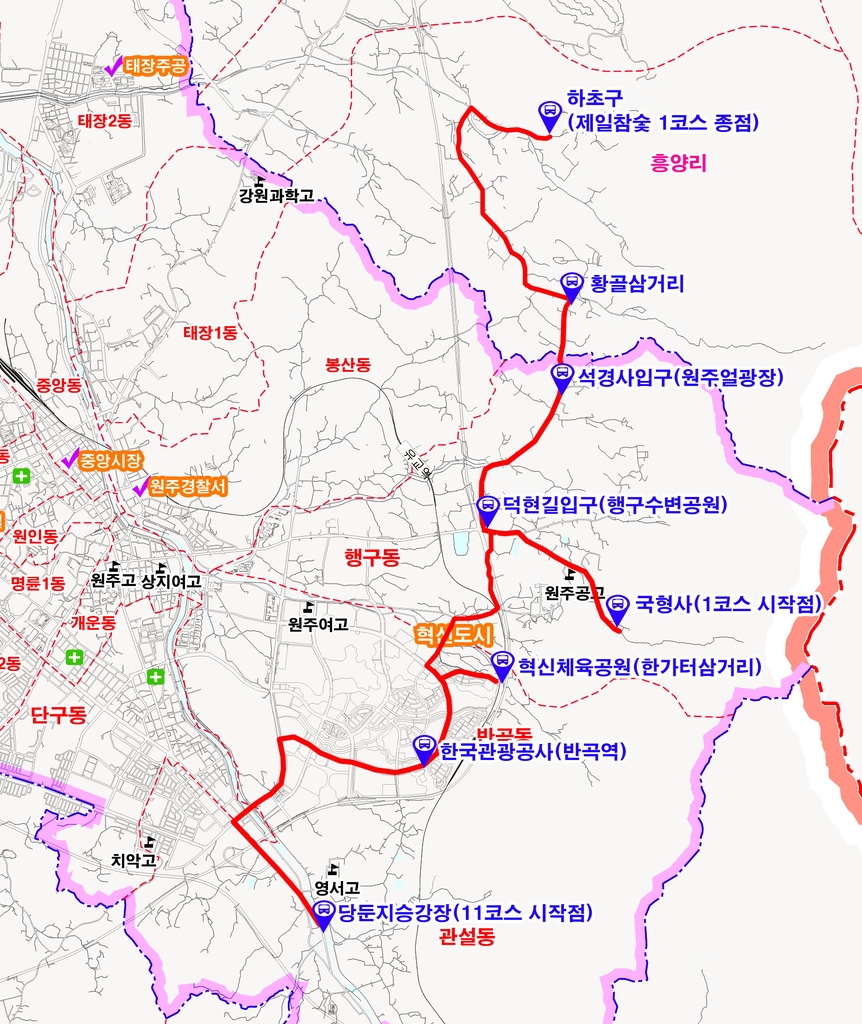 | ▲ 원주 '치악산 둘레길' 공영버스 노선 구간 [원주시 제공.재판매 및 DB 금지] |