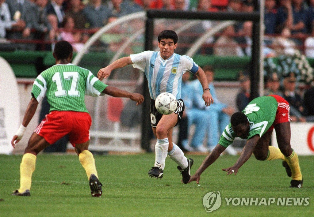 | ▲ 1990년 대회에서 카메룬에 일격을 당한 마라도나 [AFP=연합뉴스] |