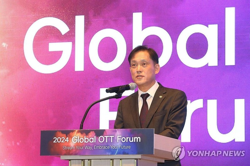 | ▲ 개회사 하는 김태규 방통위원장 직무대행 (서울=연합뉴스) 김태규 방송통신위원회 위원장 직무대행이 31일 서울 중구 앰배서더 서울 풀만 호텔에서 열린 '2024 국제 OTT 포럼'에서 개회사하고 있다. 2024.10.31 [방송통신위원회 제공. 재판매 및 DB 금지] photo@yna.co.kr |
