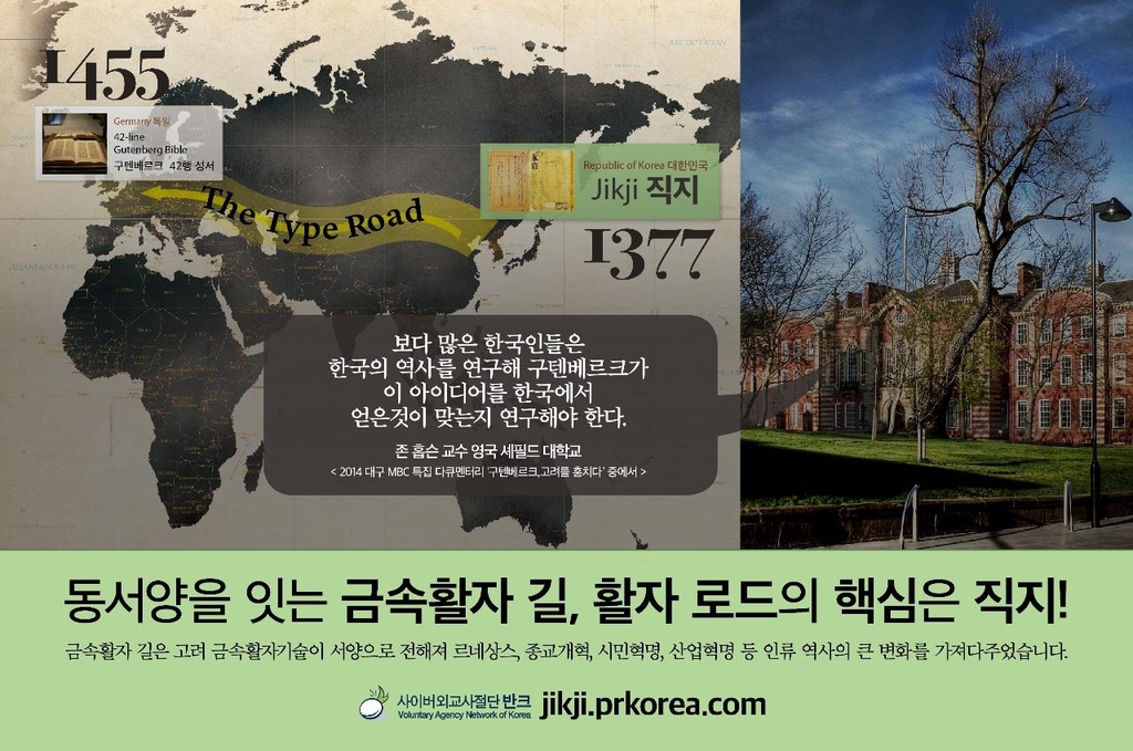 '금속활자 길, 활자 로드를 찾아서'라는 이름의 캠페인으로, 앨 고어 전 미국 부통령, 뉴욕타임스 기사, 존 홉슨 영국 셰필드대 교수, 영국의 역사학자 헨리 허드슨 등이 '직지가 유럽으로 전파됐을 수도 있다'고 주장한 내용을 4장의 포스터에 담았다.