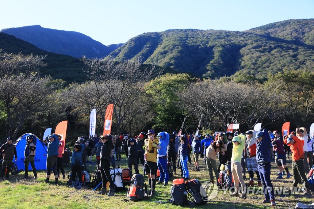 (제주=연합뉴스) 박지호 기자 = 유네스코 세계 자연유산 제주에서 세계 각국의 트레커들이 한라산과 오름, 올레길을 누비며 캠핑을 즐기는 '2023 피엘라벤 클래식 코리아'가 18일 개막했다.