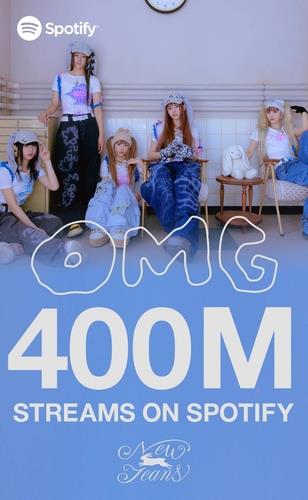 SEOUL, July 1 (Yonhap) -- "OMG," a hit song from rookie girl group NewJeans, has garnered over 400 million streams on Spotify, the group's agency said Saturday.