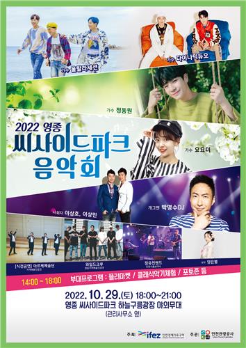 (인천=연합뉴스) 인천경제자유구역청은 오는 29일 오후 6시 영종국제도시 씨사이드파크 하늘구름광장에서 '영종 씨사이드파크 음악회'를 연다고 밝혔다.