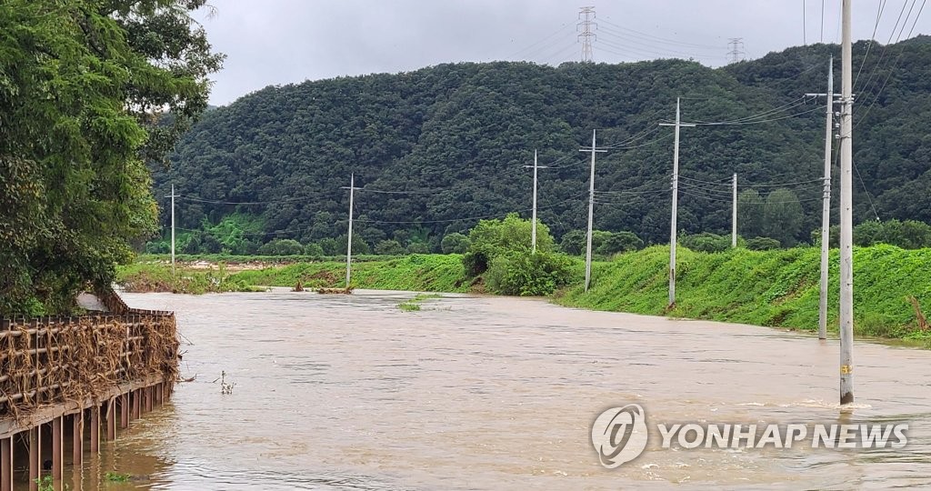 | ▲ 태풍은 지나갔지만, 다시 불어난 원주 섬강 (원주=연합뉴스) 이재현 기자 = 제11호 태풍 '힌남노'가 6일 오전 동해상을 빠져나갔지만 많은 비를 뿌리면서 원주시 부론면 섬강 인근 지류 하천이 다시 불어나 흙탕물로 변했다. 한 달여 전인 지난달 9일 이곳에서는 300㎜에 육박하는 집중호우로 인해 둑이 터지면서 노부부가 급류에 휩쓸려 실종됐다. 2022.9.6 jlee@yna.co.kr |